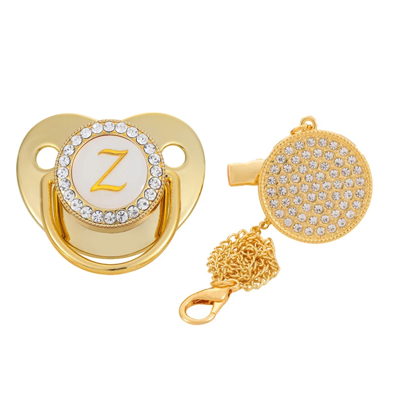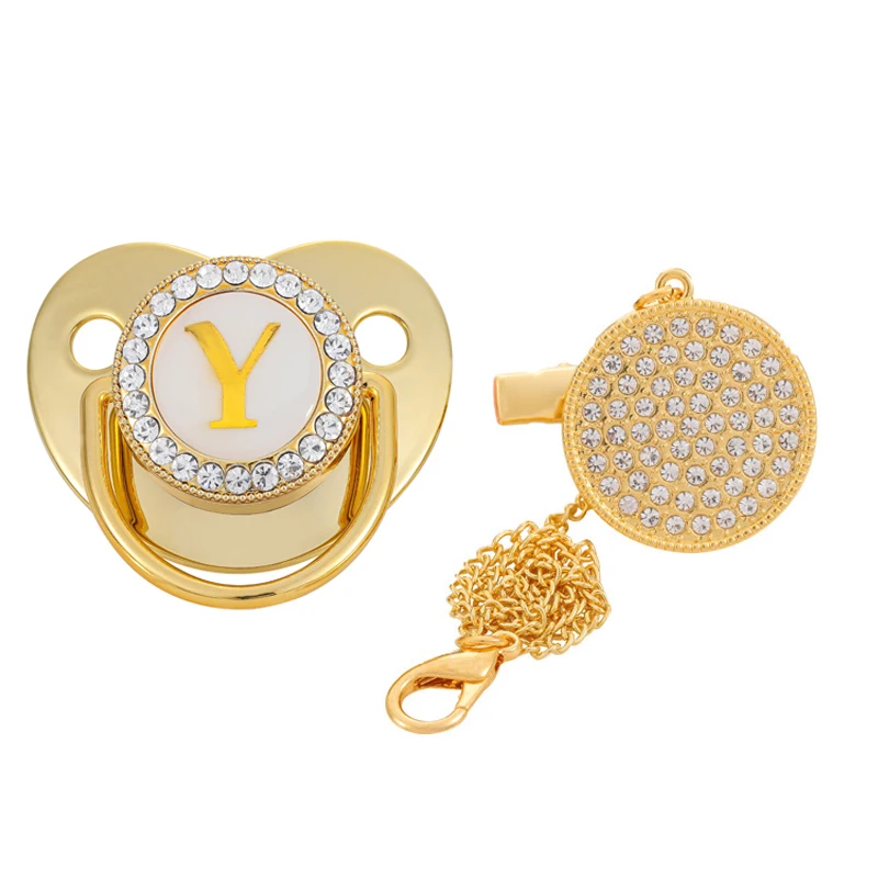 26 Имя Начальная буква детская пустышка на цепочке с прищепкой и зажимы для соски-пустышки Bling детская Силиконовая пустышка для младенцев соска золотого цвета новорожденных пустышки для младенцев