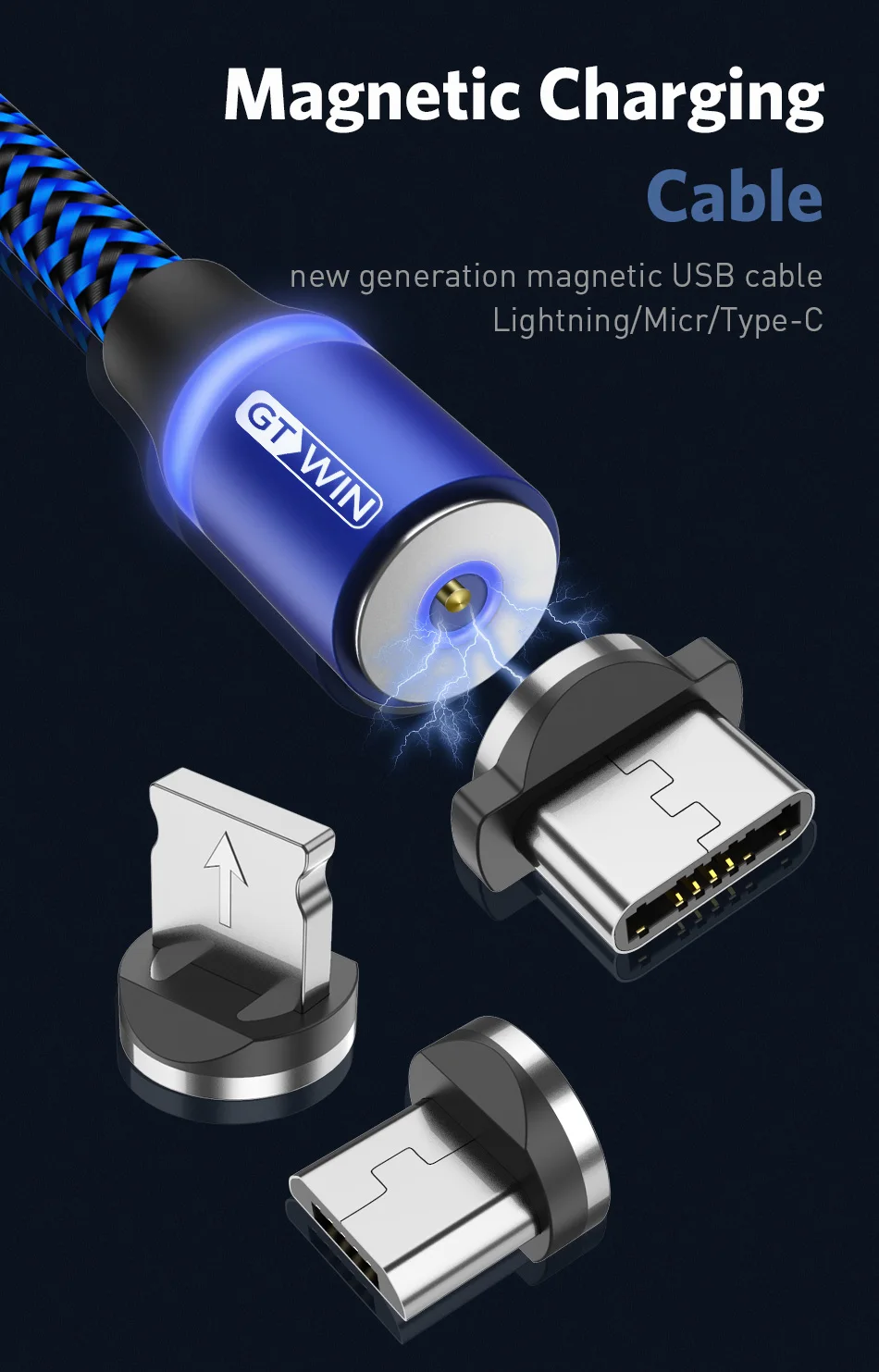 GTWIN USB кабель Магнитный тип C кабель для Samsung Xiaomi Huawei iPhone 12 Pro Max Магнитный Micro USB кабель Android сотовый телефон