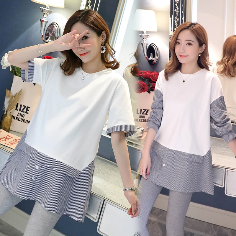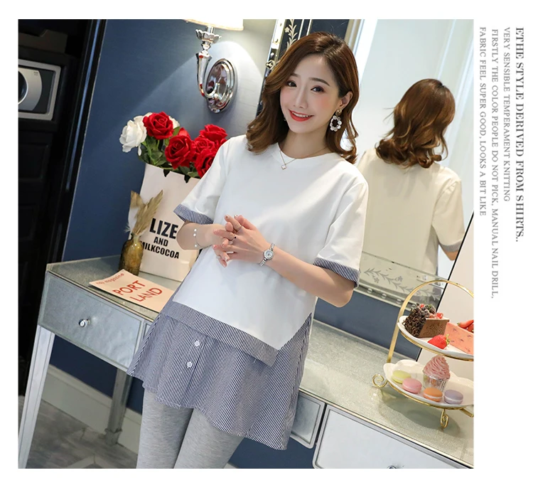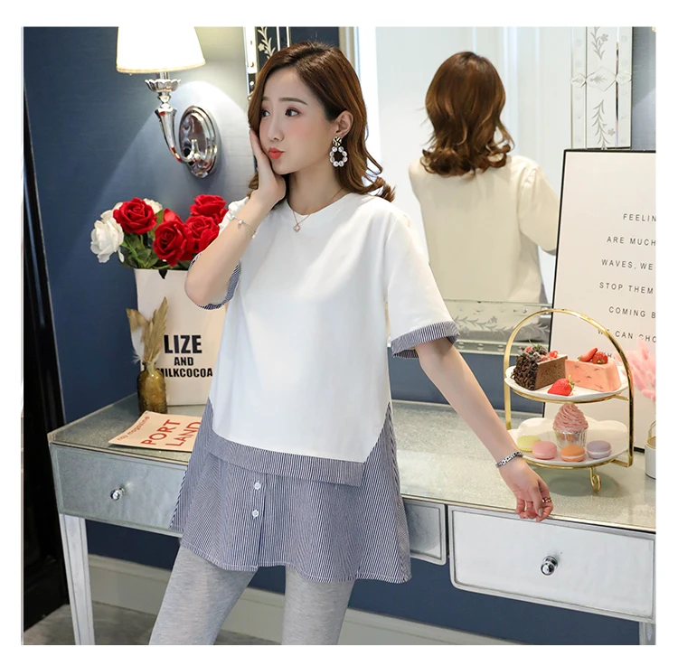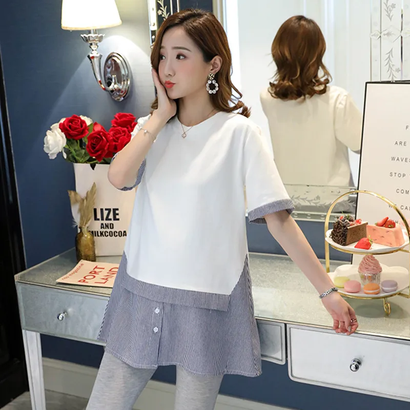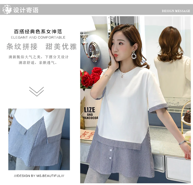 1888 # летние хлопковые лоскутные Футболки с коротким рукавом для беременных шикарная Повседневная рубашка Одежда для беременных весенние топы для беременных