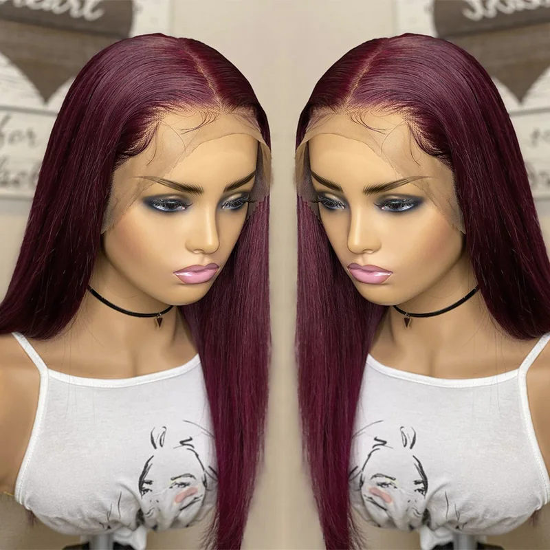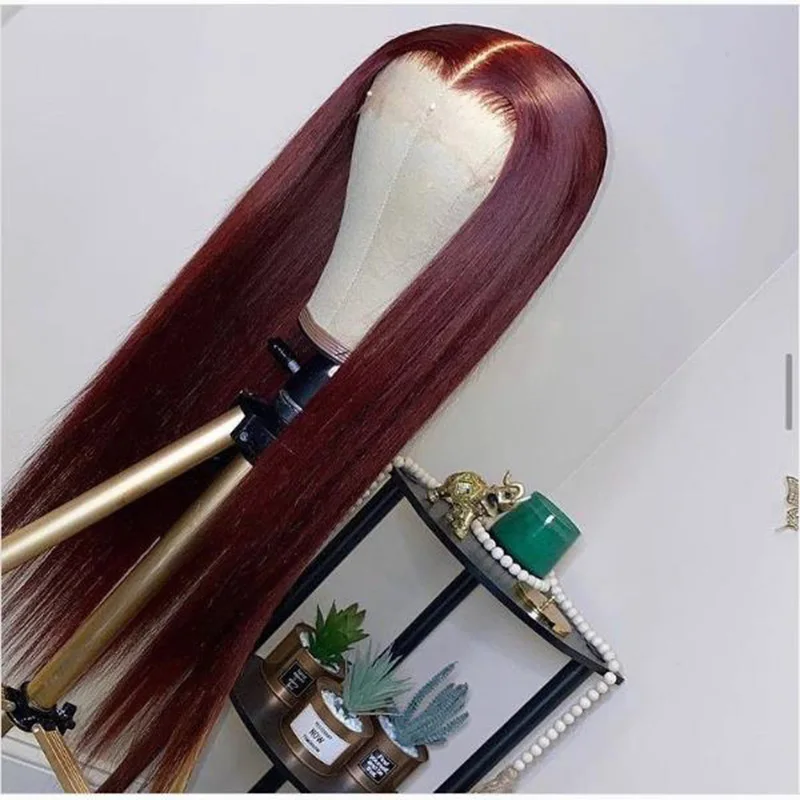 Прямые человеческие волосы красного бордового цвета, передние парик...