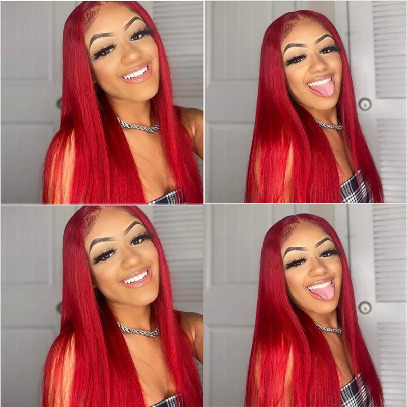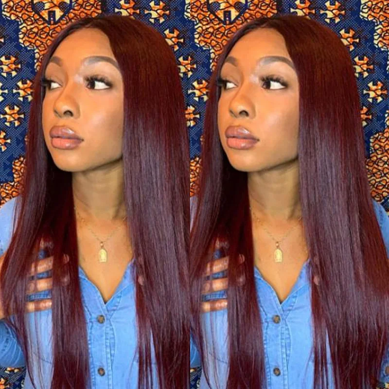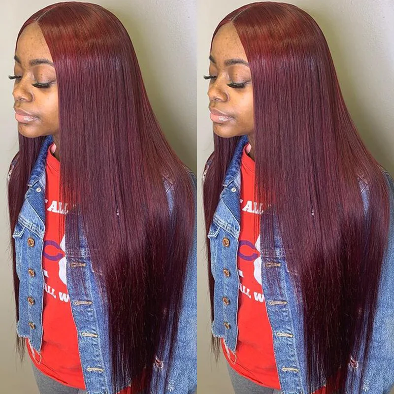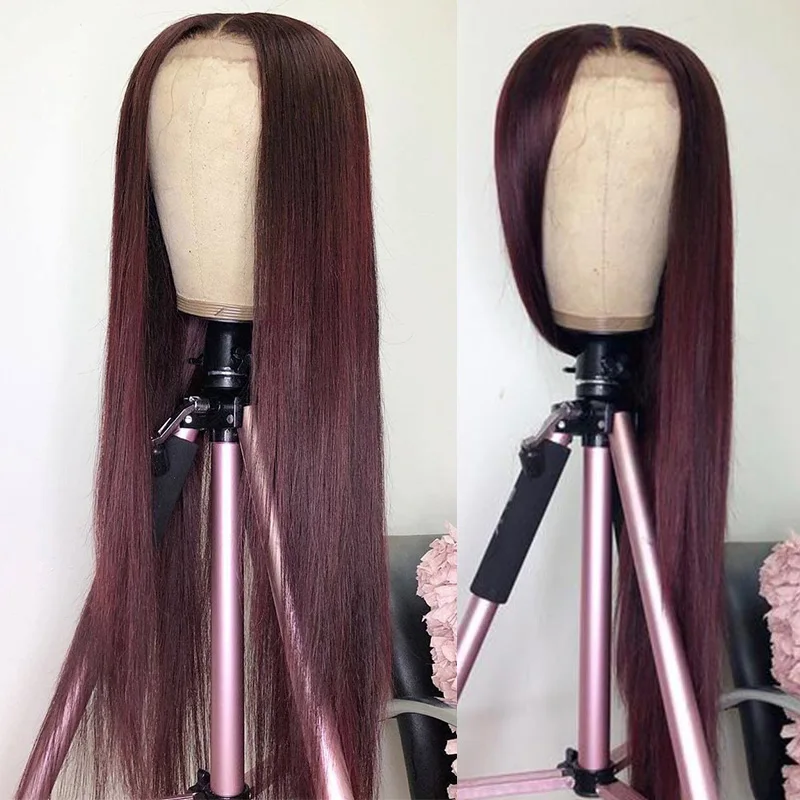 С блестящими звездами; Комплект из подходящих малазийские прямые 13X1 Синтетические волосы на кружеве человеческих волос парики предварительно вырезанные Реми бордовый 99J красный часть синтетические волосы парик шнурка для женщины 150%