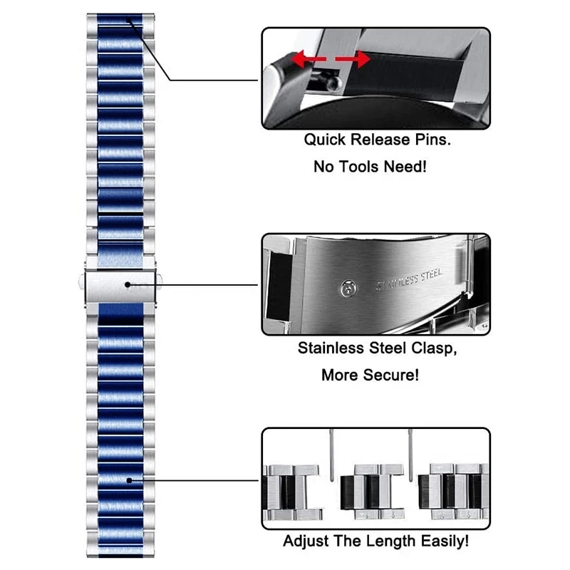 Ремешок из нержавеющей стали для Samsung Galaxy Watch Active 2, 3, ...