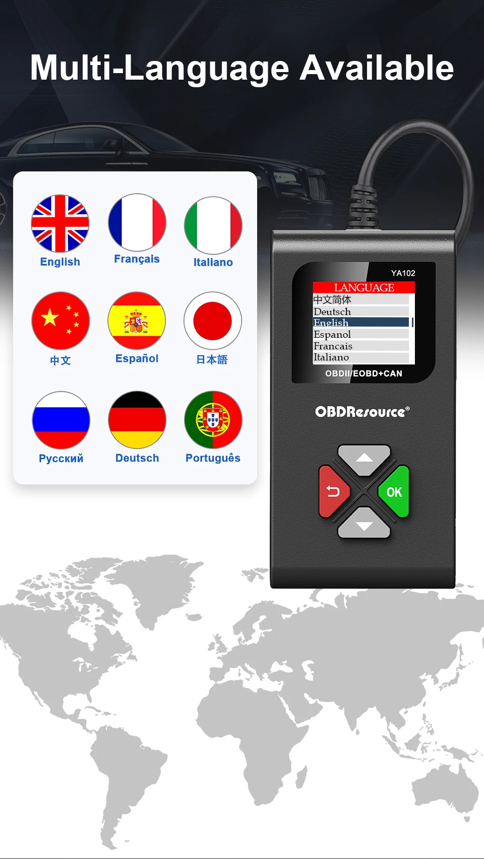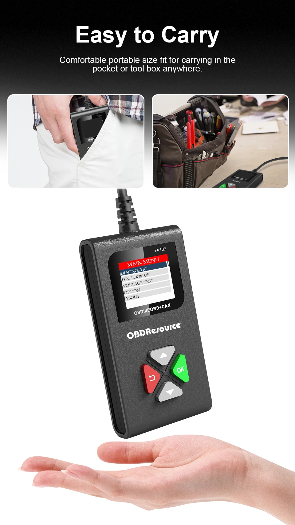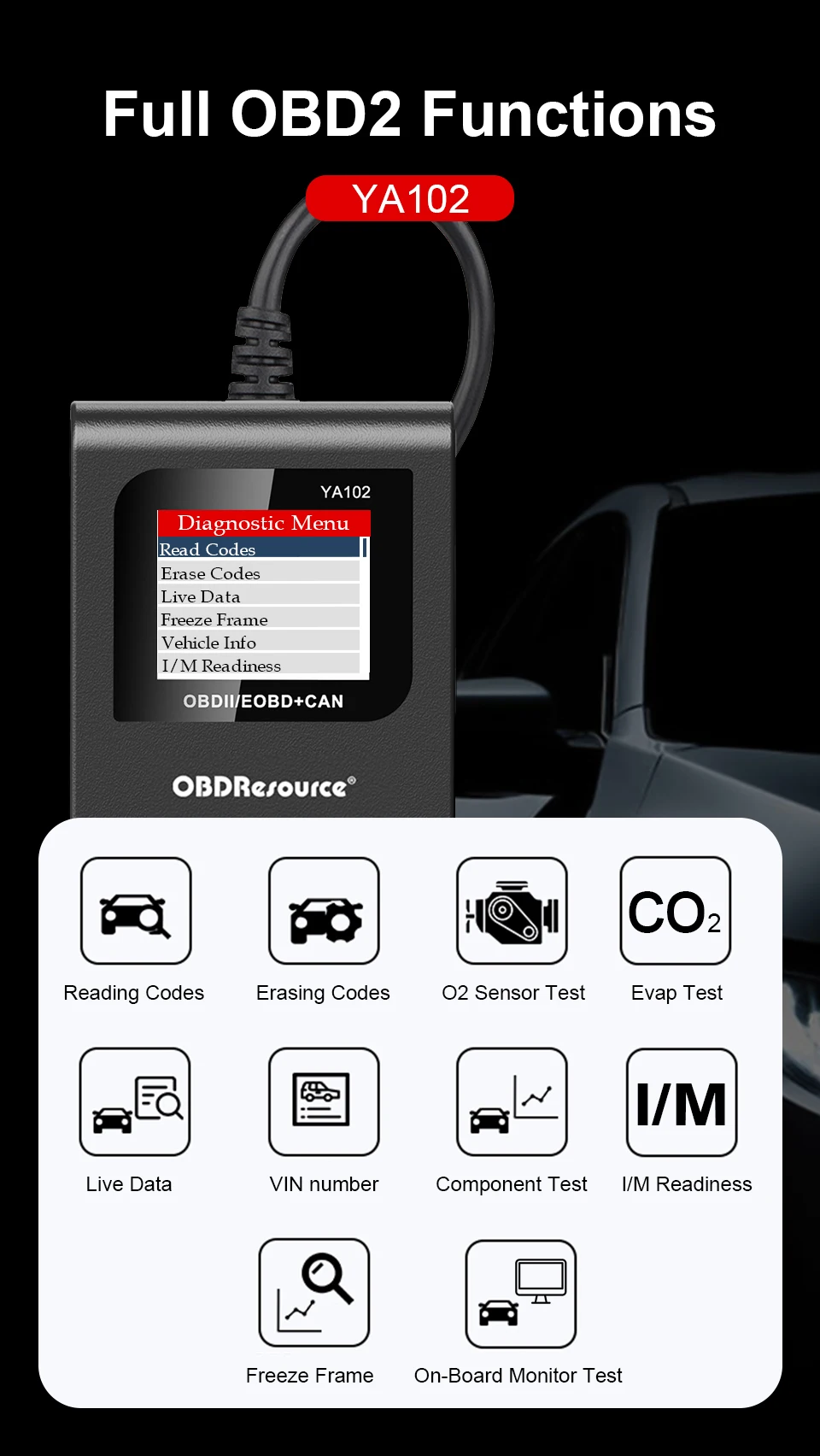 1 шт. * OBDResource YA102 считыватель кодов1 шт. * Руководство пользователя на английском языке