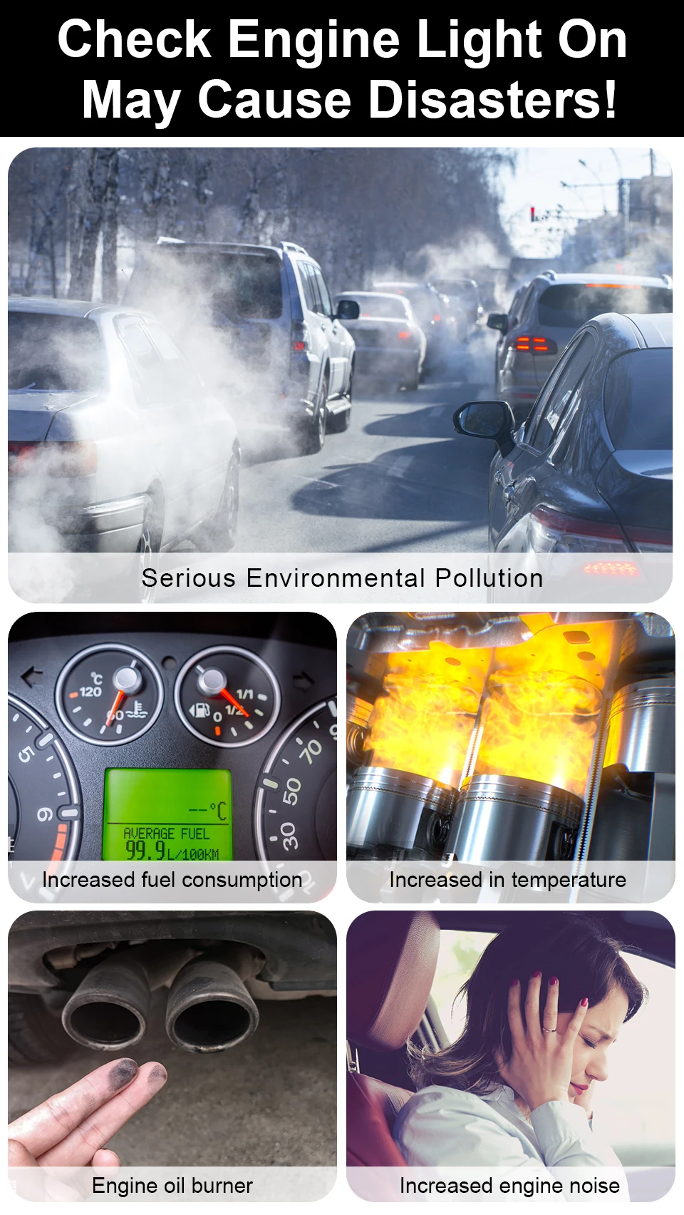 Конечно, YA102 поддерживает удаление автомобильного двигателя светильник, который имеет проблемы с выбросами автомобиля OBDII. 1) Выключите светильник ''Check engineer'Детали вызывают ваш контрольный светильник двигателя включает в себя:1. Газовая крышка2. Датчик кислорода3. Датчик соотношения воздушного топлива4. Датчик массового расхода воздуха5. Катушки зажигания6. Провода свечи зажигания7. Свечи зажигания8. Термостат9. Клапан EGR10. Испарительный предохранительный клапан (EVAP)11. Каталитический преобразователь. 2) снижение расхода топлива; Снижение шума двигателя; Снижение температуры и т. д.Если светильник двигателя не выключен вовремя. Это вызовет серьезные загрязнения окружающей среды