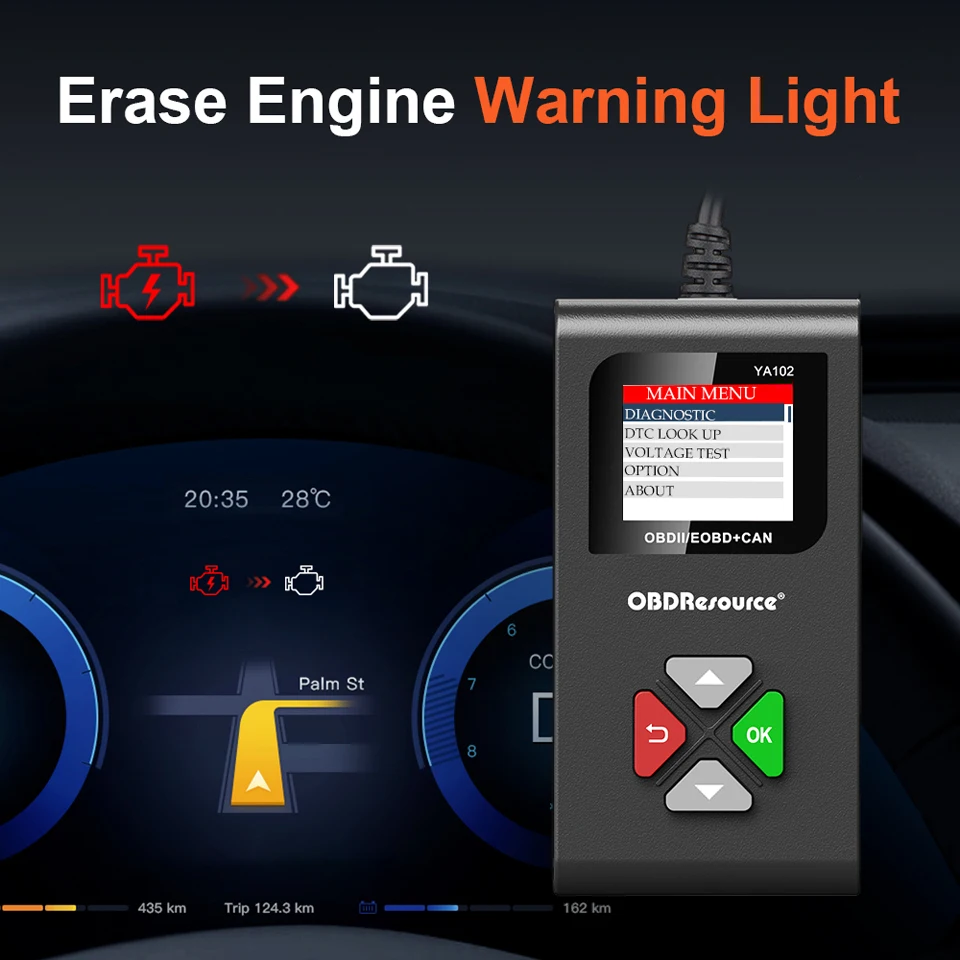 Считыватель кодов ошибок двигателя YA102 поддерживает протоколы OBD 2: