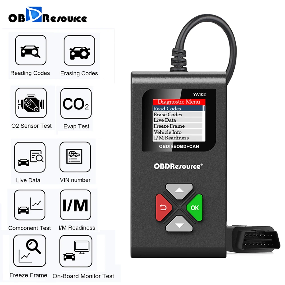 Считыватель кодов ошибок двигателя, проверка, новейший автомобильный тестер YA102 12 В, OBD2, сканирующие инструменты, многоязычное бессрочное бесплатное обновление программного обеспечения