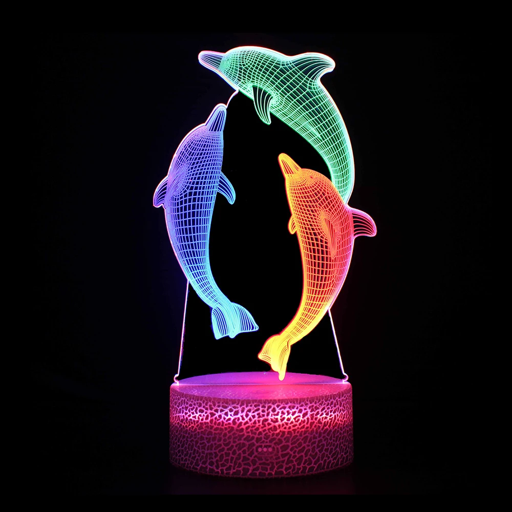 Сенсорный экран Управление красочные 3D Павлин динозавр союза с изображением животных, дельфинов; Светодиодный Ночной светильник с тремя Цвета подарок для детей друзей