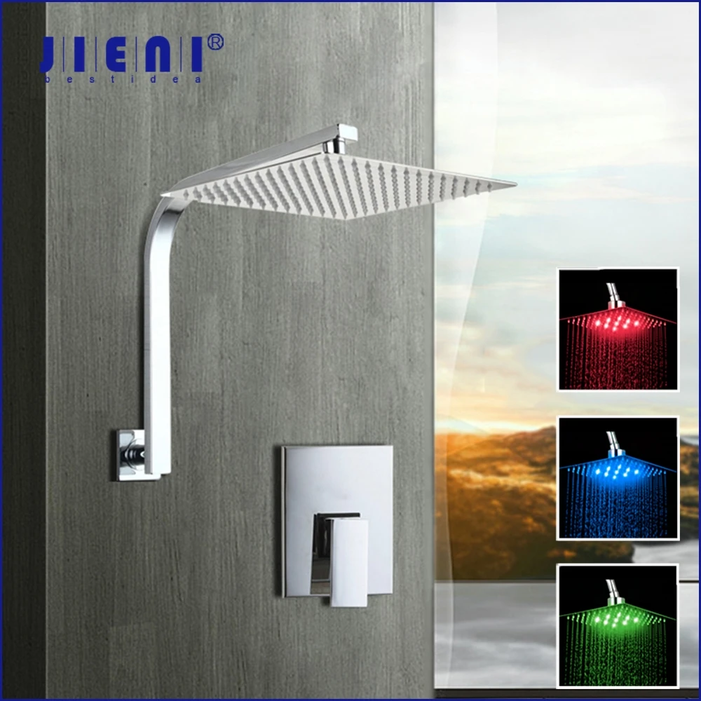 JIENI на возраст 6, 8, 10, 12 лет 16 дюймов светодиодный хром латунь дождь смеситель для душа комплект Ванная комната смеситель для душа комплект Wв стиле Лебединая шея душевая кабина смеситель для душа набор