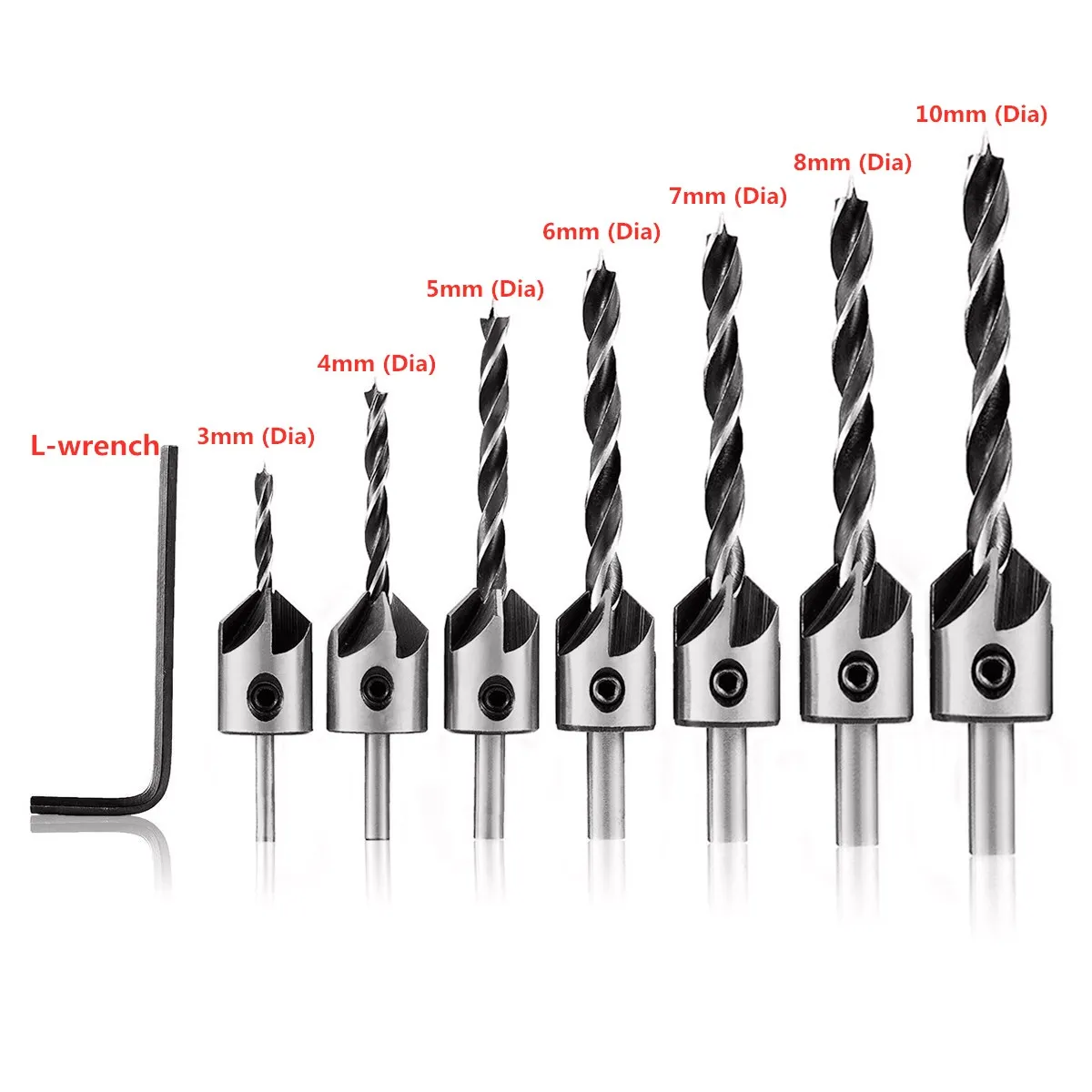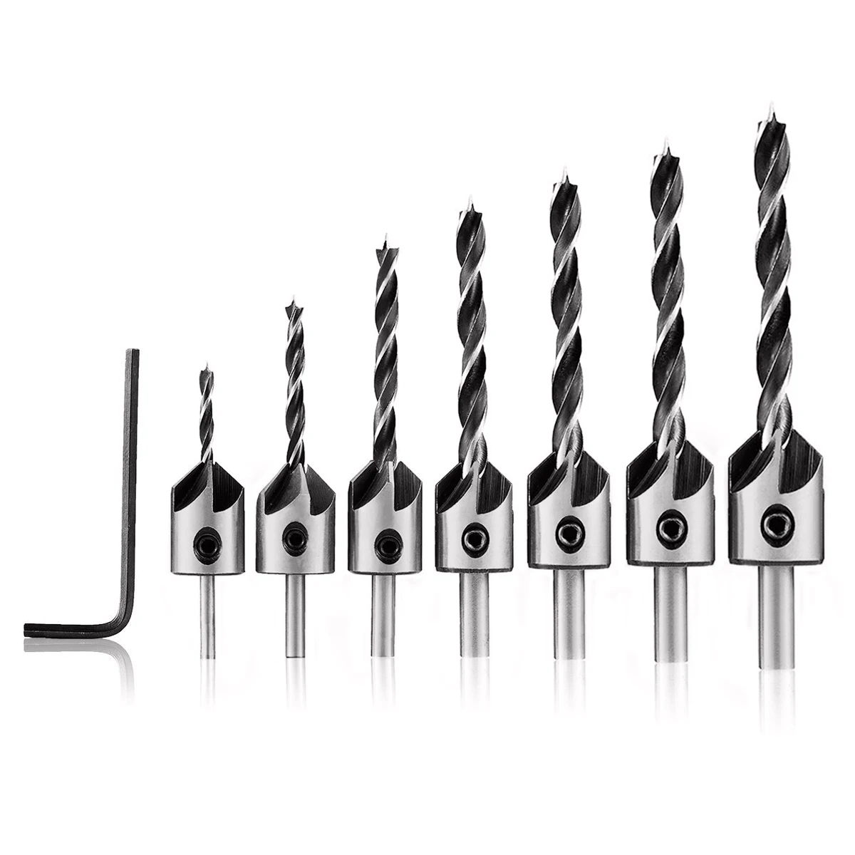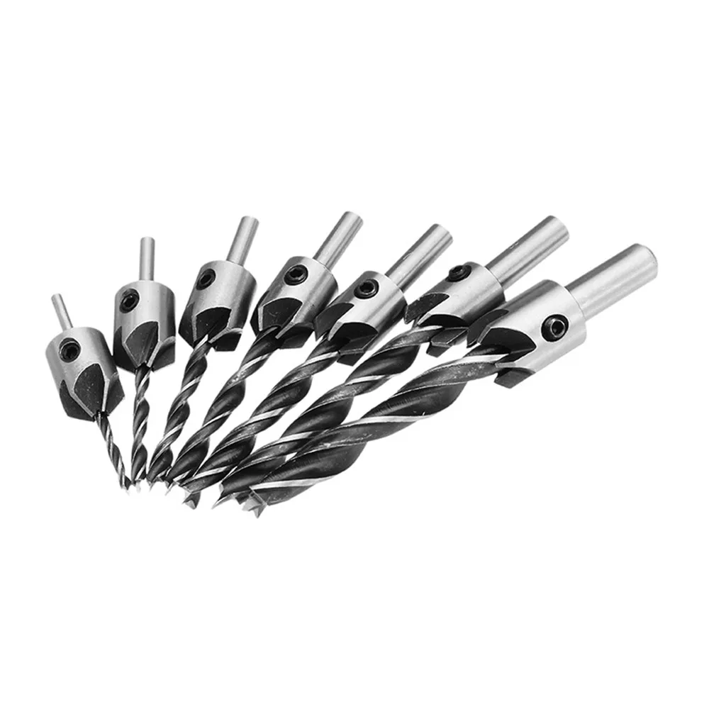 Набор сверл для зенковки, комплект из 7 насадок из быстрорежущей стали с 5 канавками, 3-10 мм, для работ по дереву
