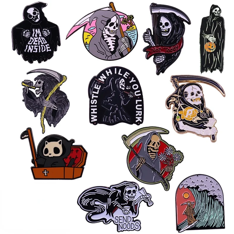 Готический Мрачный Жнец брошь коллекция Cat гроб смерти значок серфинг Ghost Beach волна заколка на Хеллоуин
