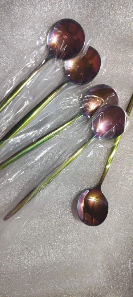6 шт Радуга Нержавеющаясталь Чай ложка Десерт Мороженое Ложки полированная помешивая Кофе ложки, кухонные принадлежности столовые приборы