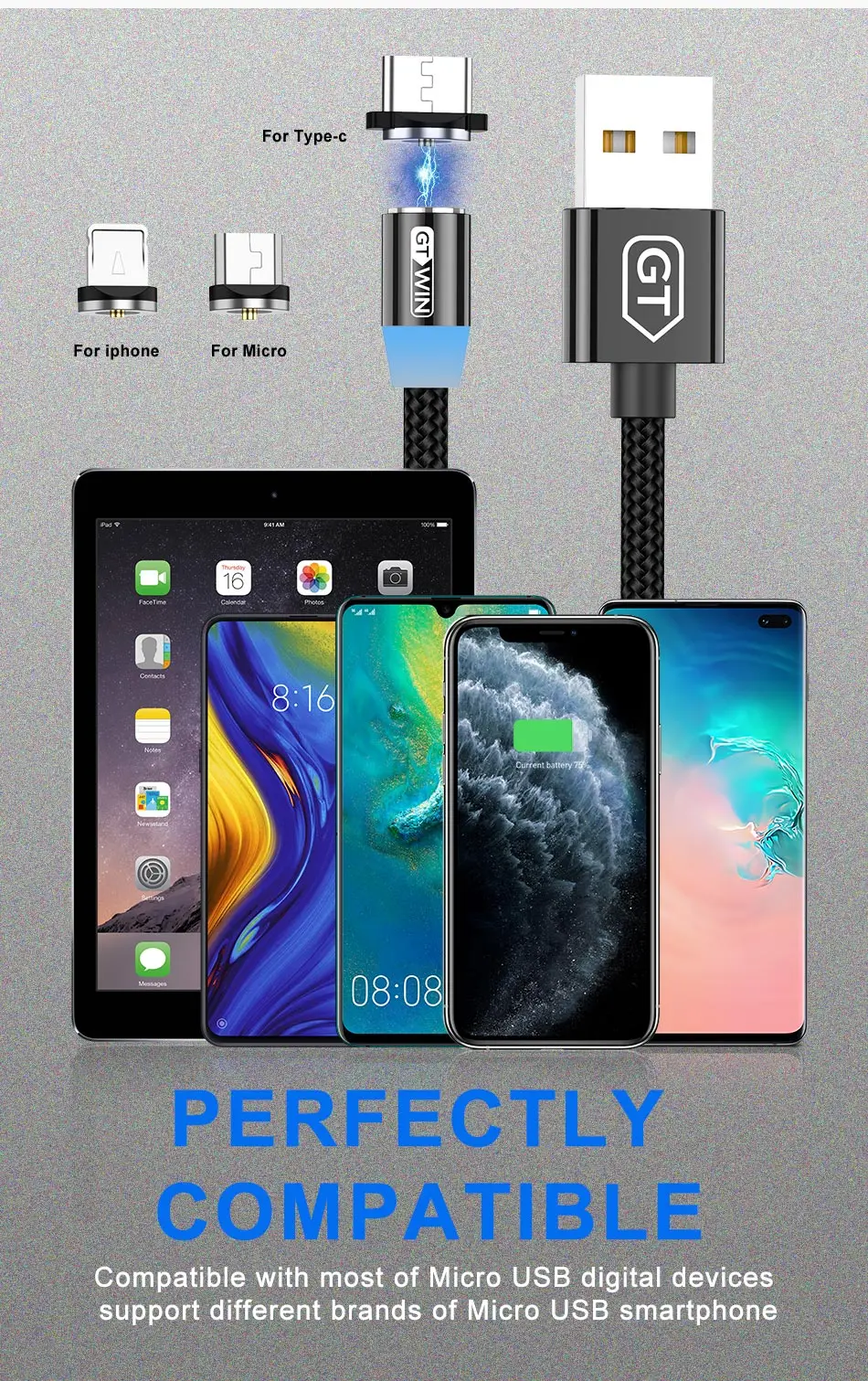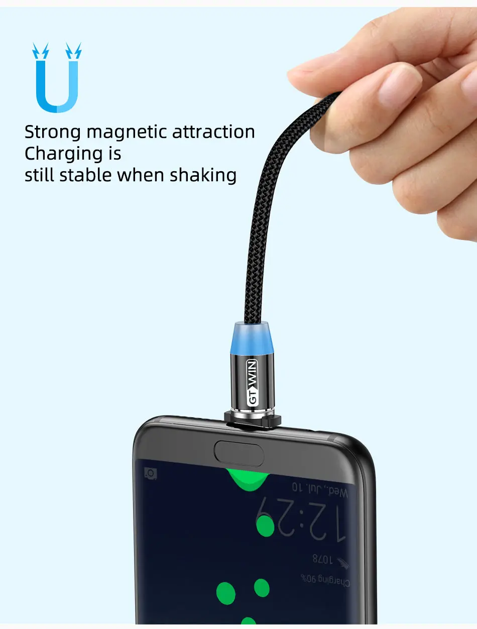 GTWIN Магнитный USB кабель Type C Зарядка для iPhone 12 Pro Max Samsung Xiaomi Huawei мобильный телефон Micro USB кабель зарядное устройство