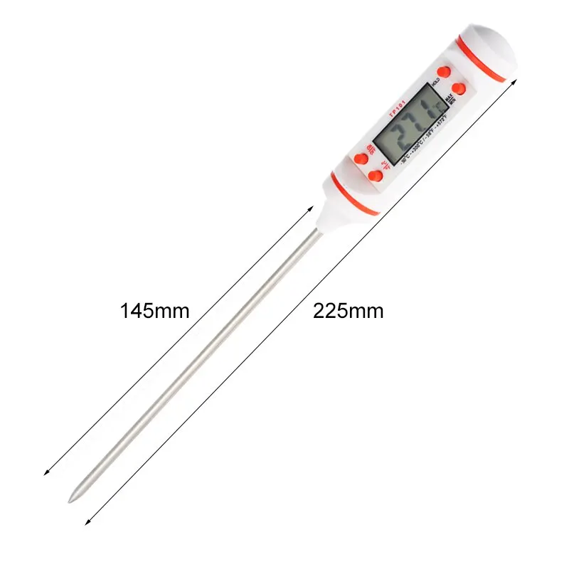 Общая длина: 225 ммДлина зонда: 145 ммРазмер экрана: 21x8 ммЦвет: черный/белыйМатериал: Зонд из нержавеющей стали, пластикДиапазон измерения: -50 ℃ ~ 300 ℃(-58 ℉ ~ + 572 ℉)Разрешение: 0,1 ℃Точность: ± 1 ℃(-20 ℃ ~ + 80 ℃) , ± 2 ℃ (другой диапазон)Аккумулятор: AG13 кнопочный элемент x 1 (не входит в комплект)