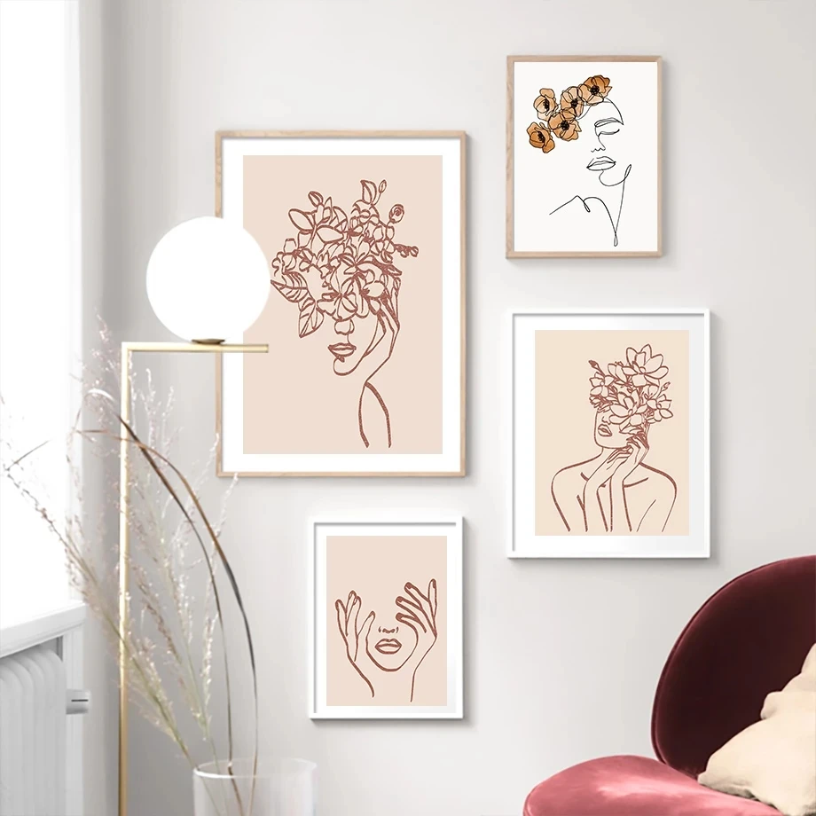 Абстрактная линия лица, плакаты для рисования без одежды для девоче...