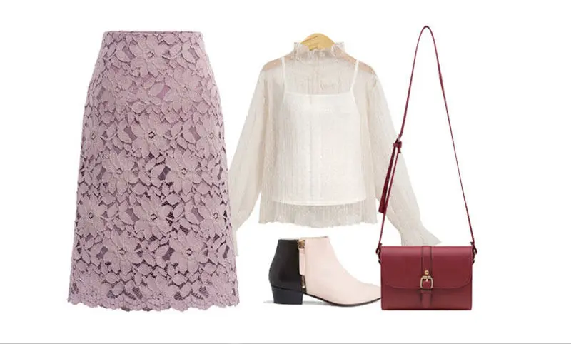 Осенняя прямая женская юбка 2021, элегантные Ажурные кружевные Элег...