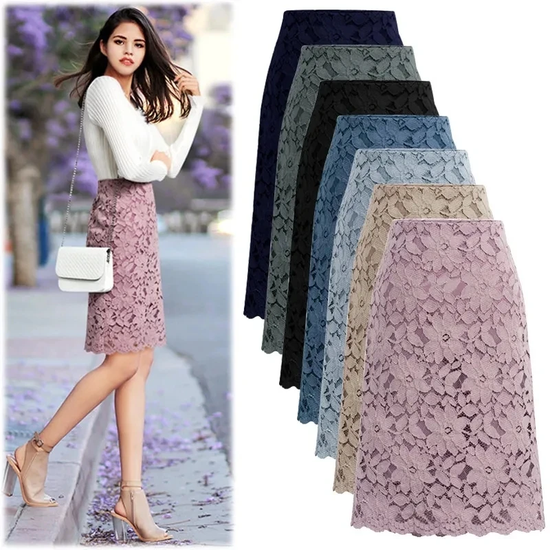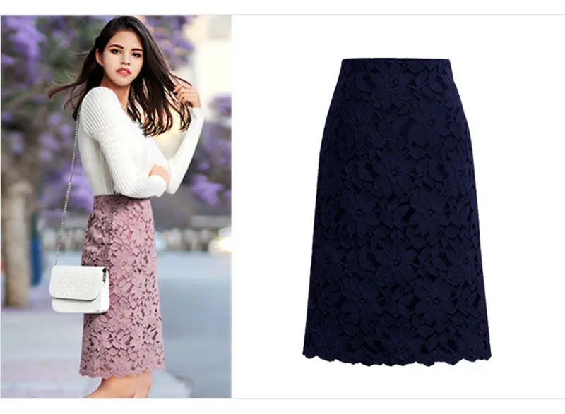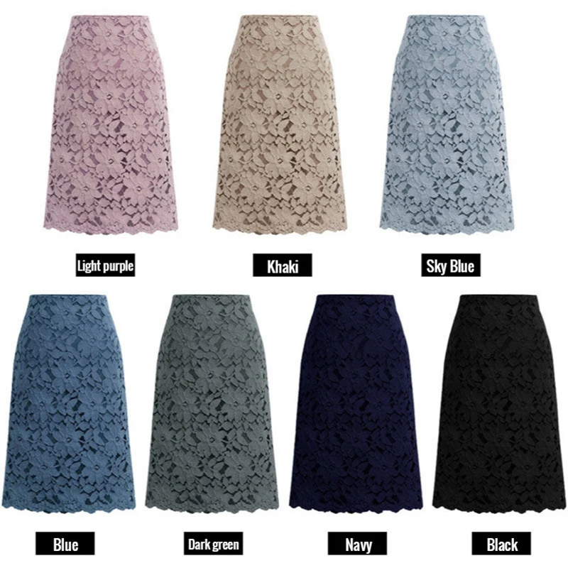 Женская кружевная юбка с завышенной талией, офисная юбка большого размера средней длины до колена, элегантная однобортная юбка-карандаш, весна-лето 2021