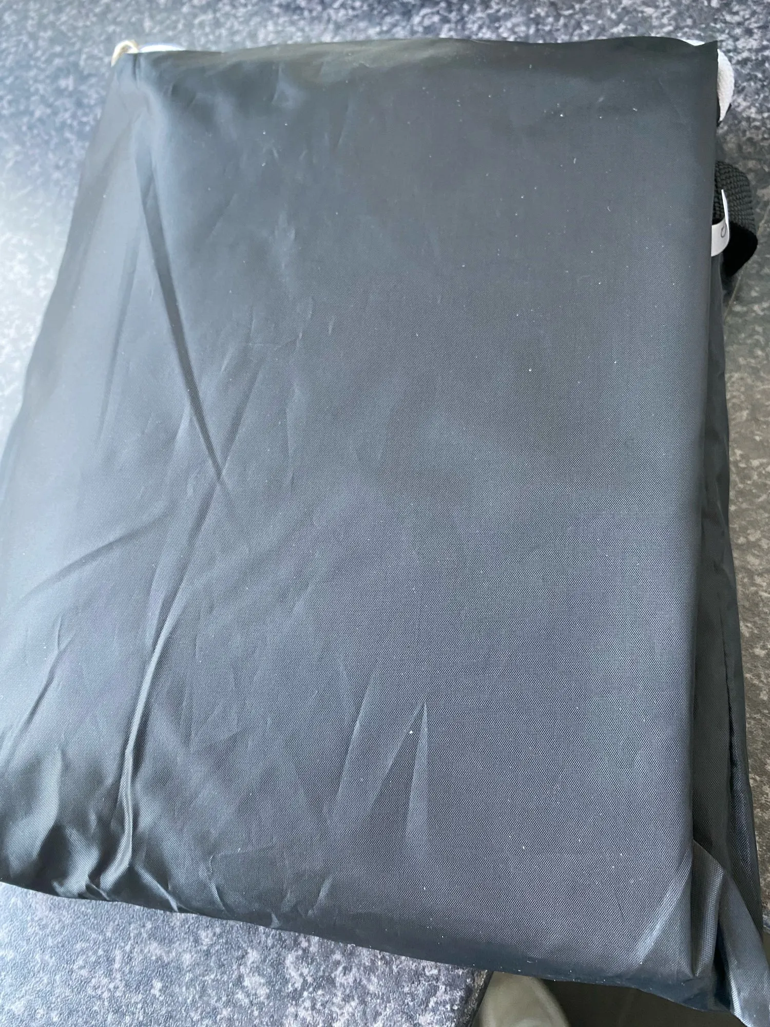 Чехол был доставлен очень быстро. Хороший размер, красиво сложенный в сумке для хранения, и материал кажется хорошим-придется увидеть в течение нескольких недель/месяцев, как он держится от погоды.