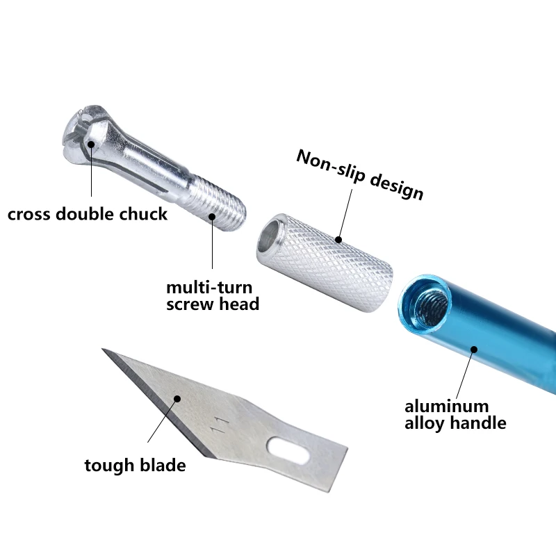 Non-Slip резьбы Металлический нож для скальпеля ящик для инструментов с лезвиями 5 шт комплект ювелирных изделий гравировка нож для Мобильный телефон PCB DIY ремонт ручные инструменты