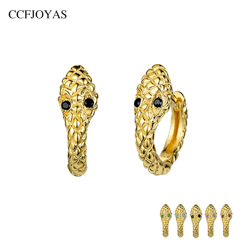 CCFJOYAS 925 стерлингового серебра серьги-кольца для женщин простой цвета: золотистый, черныйфиолетовыйкрасный; Партиямизеленый CZ Змея маленькая обручи, модное ювелирное изделие