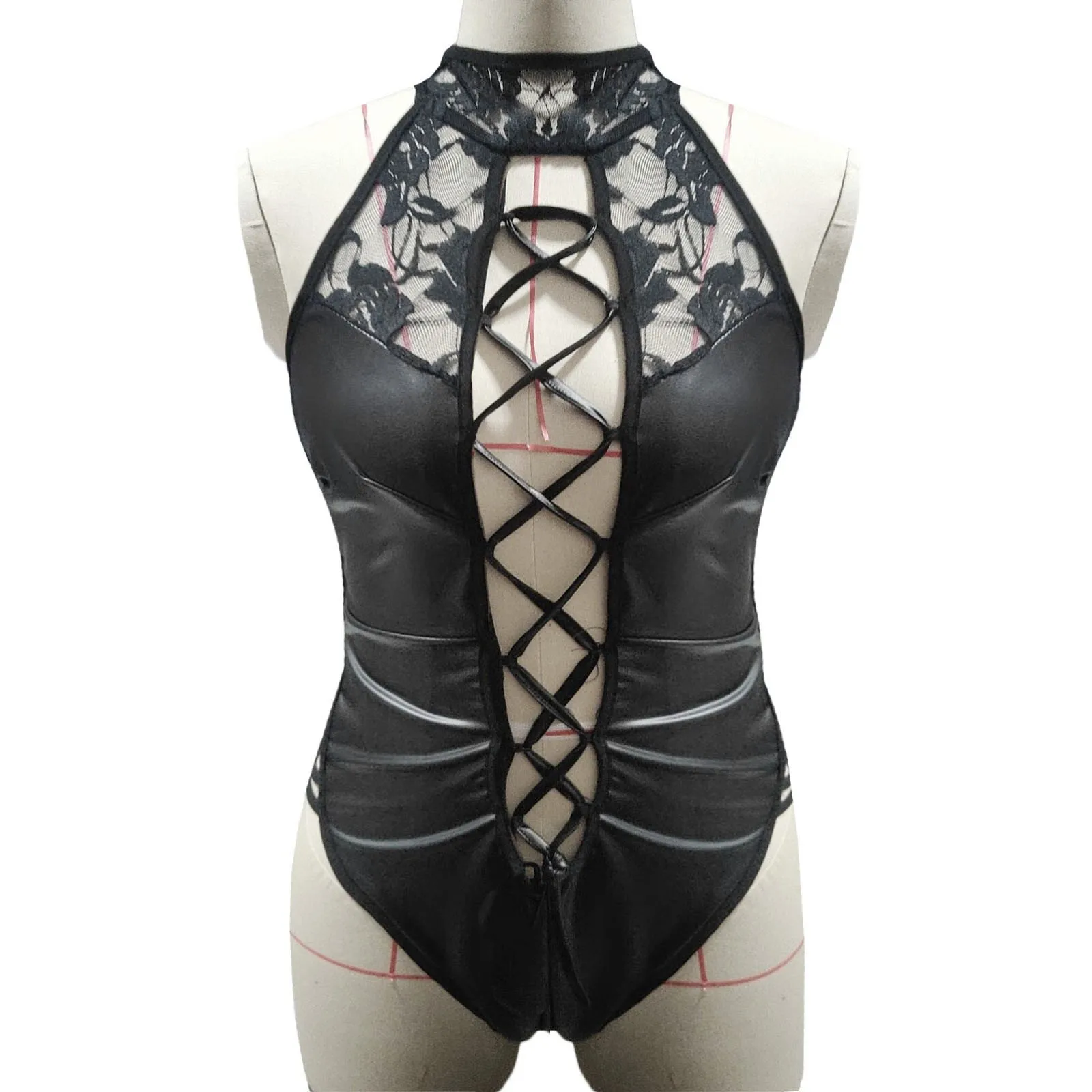 S-3XL кружевные кожаные Экзотические костюмы, сексуальное нижнее белье с вырезами, женское нижнее белье, сексуальное белье размера плюс
