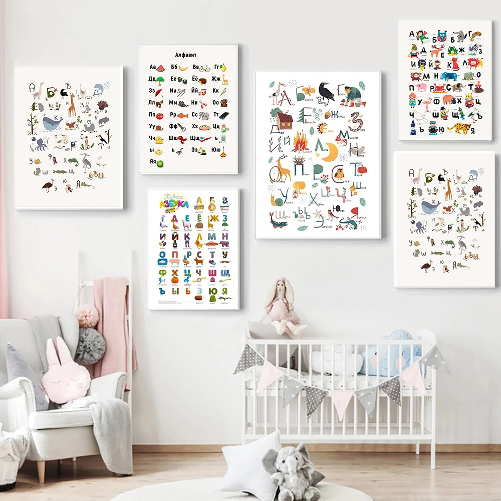 Настенный постер с русским алфавитом ABC, Картина на холсте с буква...