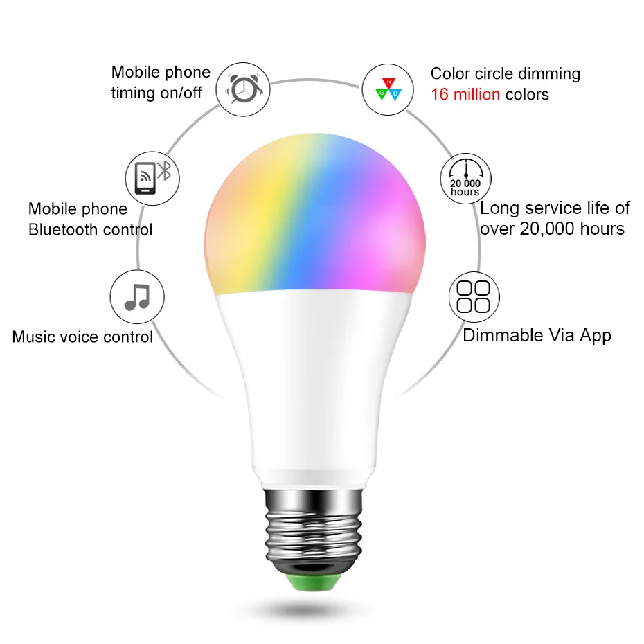 Регулируемая светодиодная смарт-лампа E27, 15 Вт, Bluetooth, RGBW, RGBWW