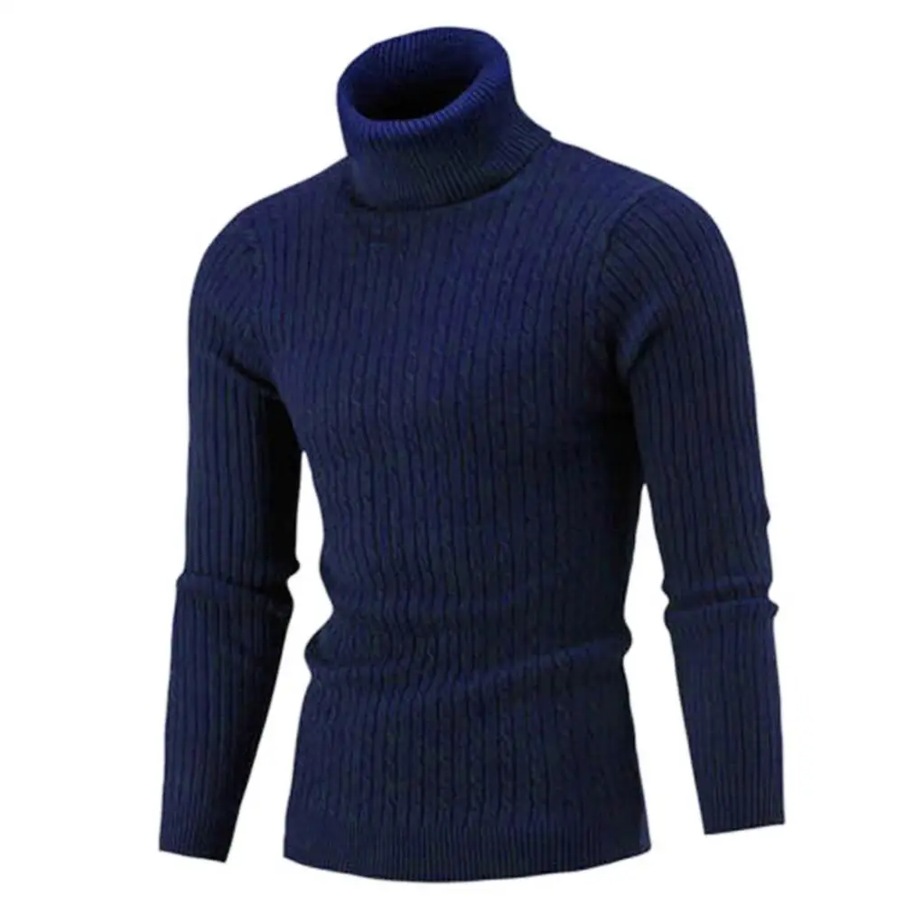 Повседневный мужской зимний Однотонный свитер с высоким воротом и длинными рукавами, вязаный свитер для похудения