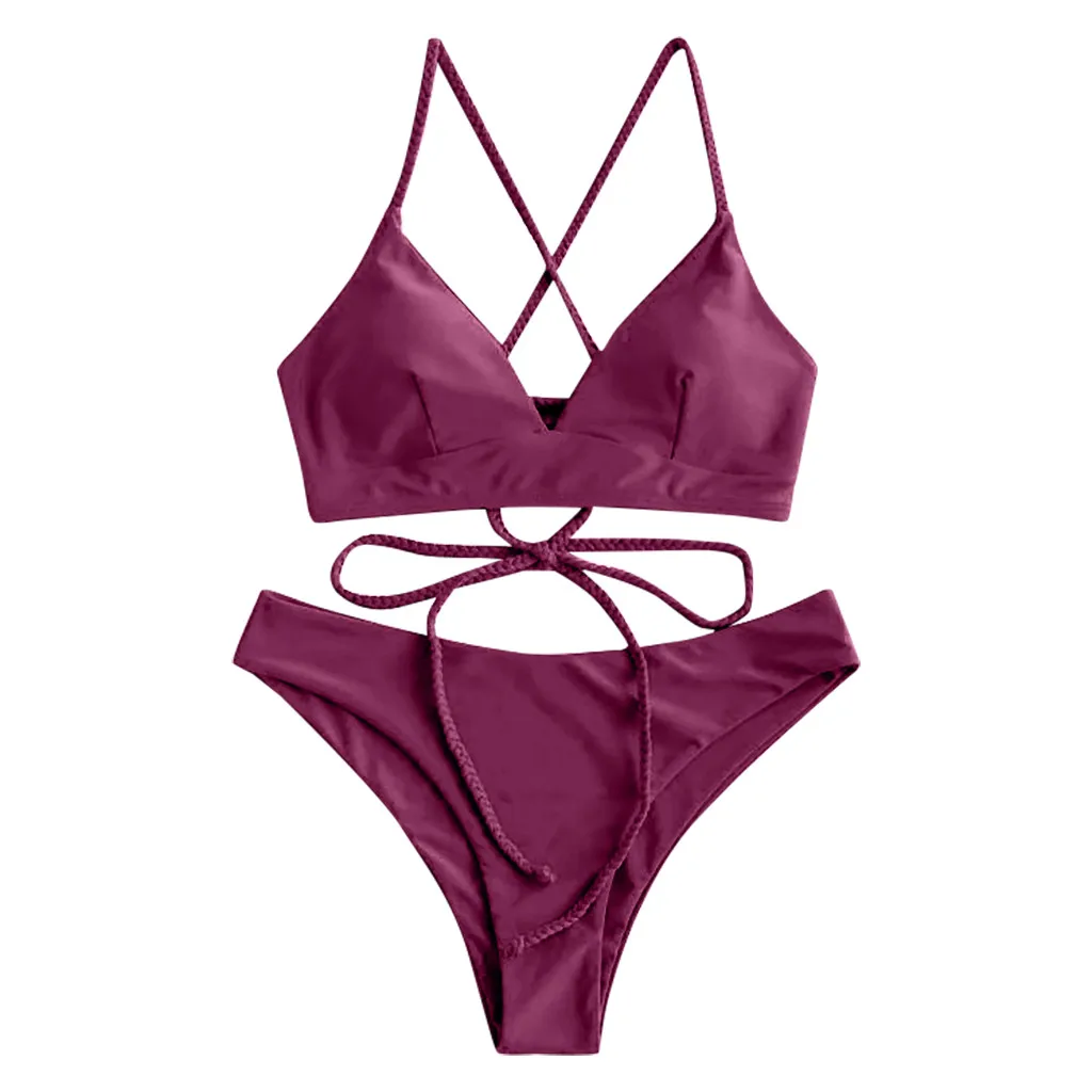 Женский купальник, комплект бикини, однотонный комплект с высокой талией из двух предметов, купальник пуш-ап, пляжная одежда, бикини 2021, женский купальник
