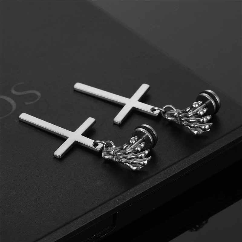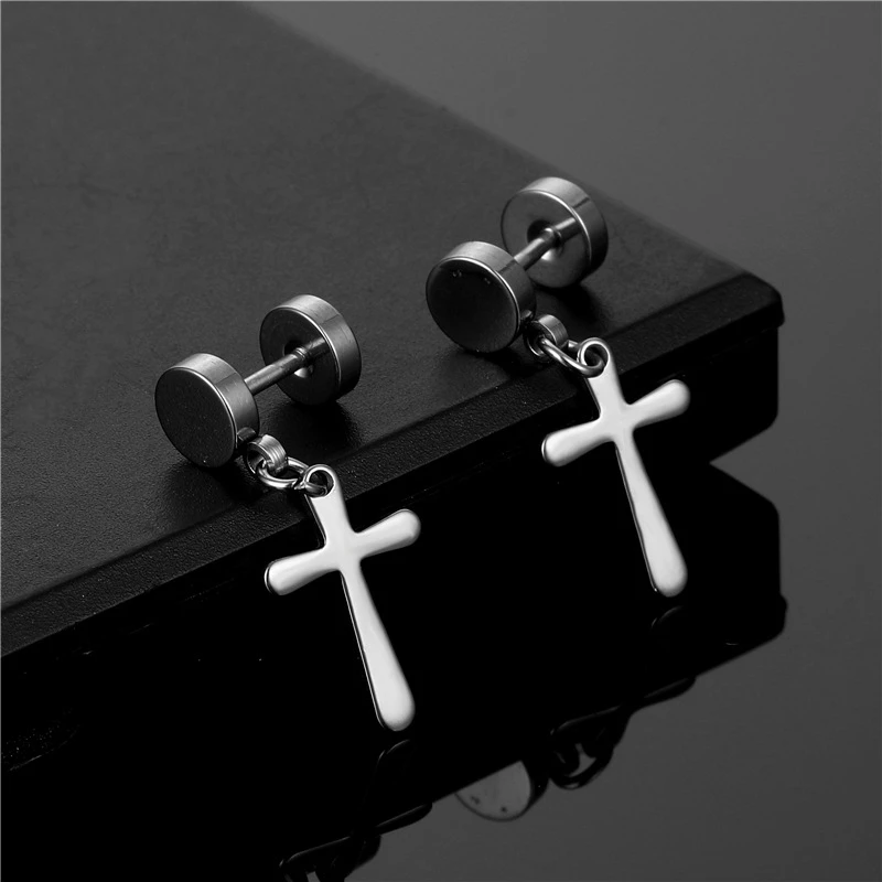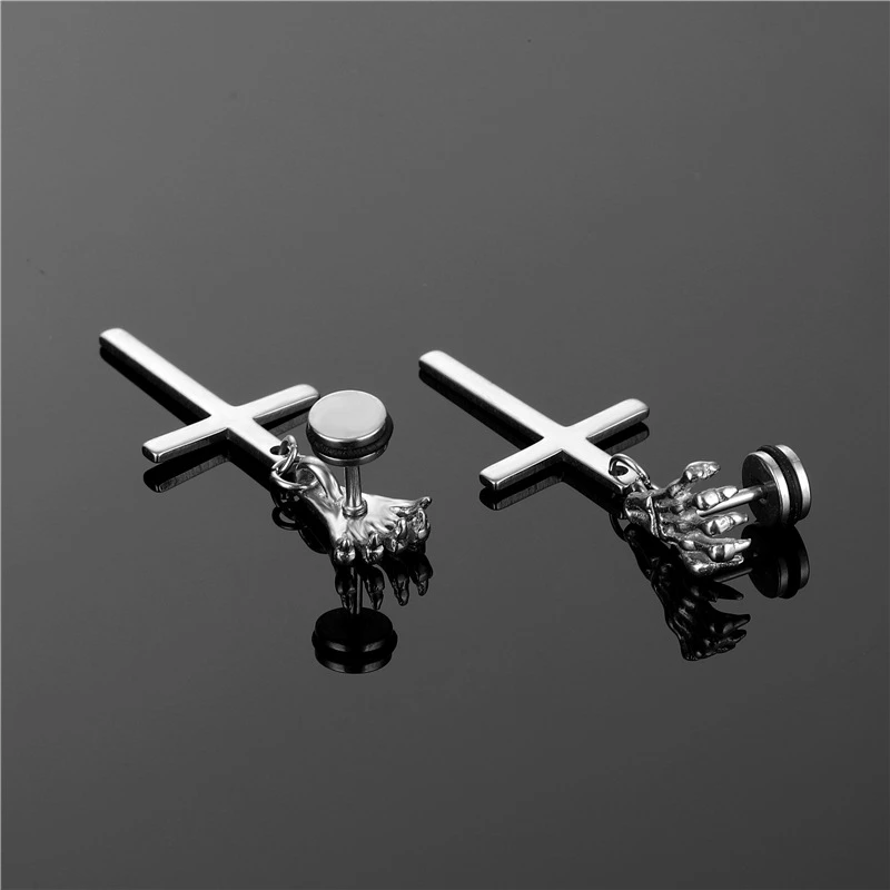 Мода черного цвета в стиле панк с нержавеющей стальютитановая сталь, серьги со шпилькой, для мужчин и женщин в готическом стиле, с принтом "поп-в стиле хип-хоп для ушей, смелые ювелирные украшения