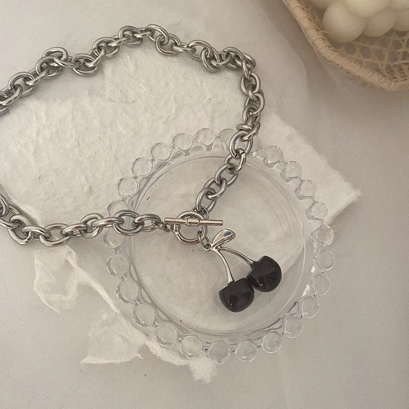 Ожерелье-чокер с черной подвеской в виде Вишни из нержавеющей стали