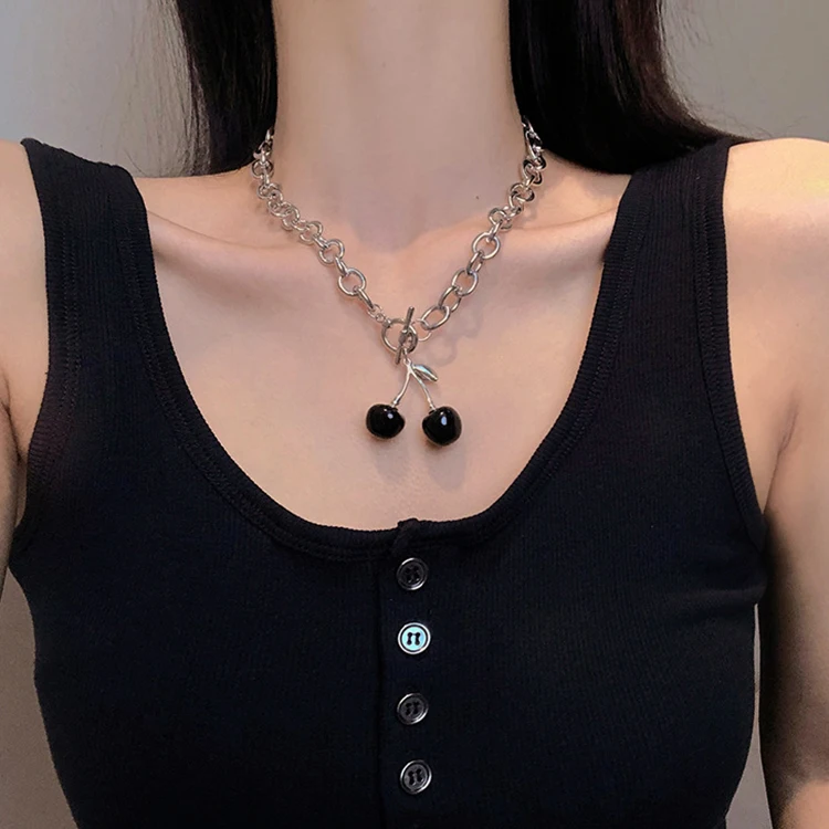 Ожерелье женское, металлическое, в готическом стиле, с вишенками