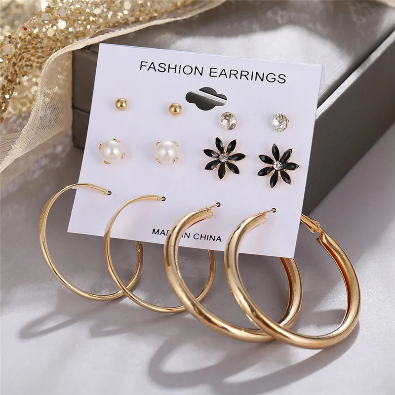 Серьги-кольца женские, золотые, геометрические, серьги с цветком и жемчугом