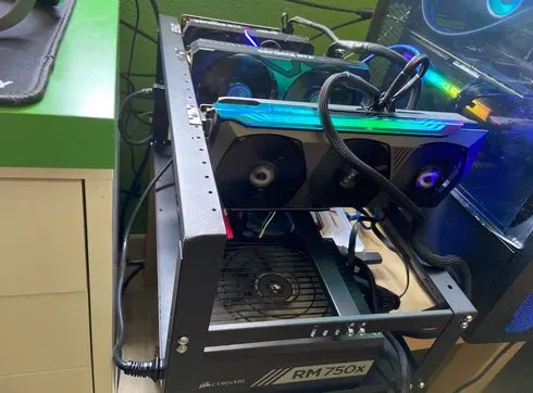 Карты очень близко друг к другу, как только они разделены, по крайней мере, это происходит с nvidia 3000 серии. Основание было избито и согнуто, хотя это было не много. Это довольно компактно, но надежно. Обязательно добавьте вентиляторы из-за наклеек на карты.