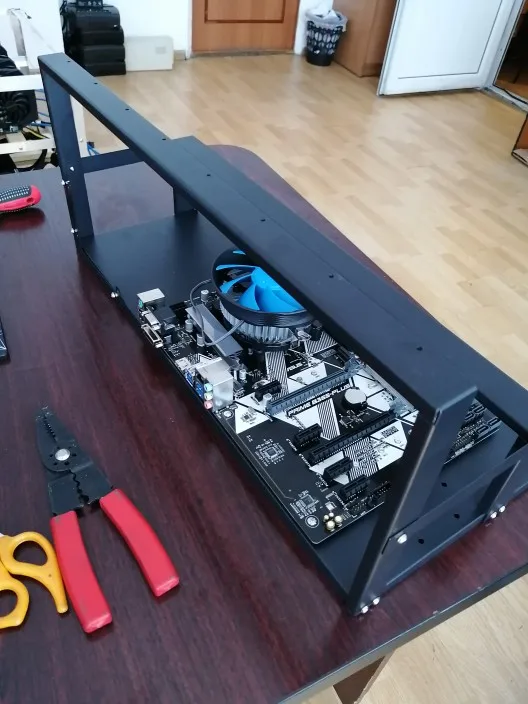 Delivery fast, perfect.It is a very high quality GPU miner rig. All the components are tough and it feels very sturdy. It is easy to assemble. The mounts for the PSU and the Harddisk are transparant plastic and look nice. They were even covered in additional material to make sure they wouldn't be harmed in transit. Would highly recommend it to others!