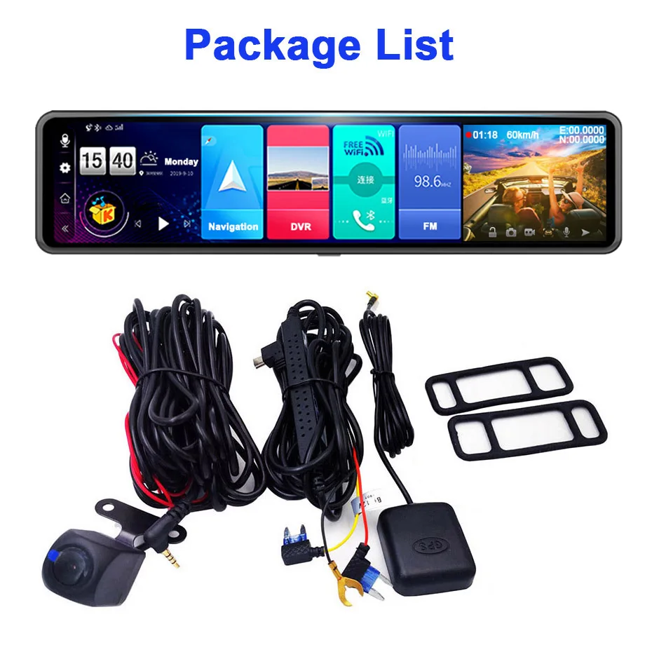 Зеркало заднего вида с камерой заднего вида, 12 дюймов, 4G, Wi-Fi