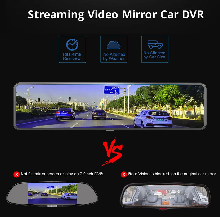 Традиционные зеркала заднего вида просто обеспечивают ограниченное поле заднего вида, большую часть времени, нам нужно повернуть голову назад, чтобы увидеть больше, когда мы паркуем. Видеорегистратор Streaming media позволяет избежать не только препятствий для подголовников или задних столбов, но и дает примерно в 3 раза больше стандартного зеркала заднего вида. Более того, видимость потрясающая даже в ночное время и в дождливые дни.