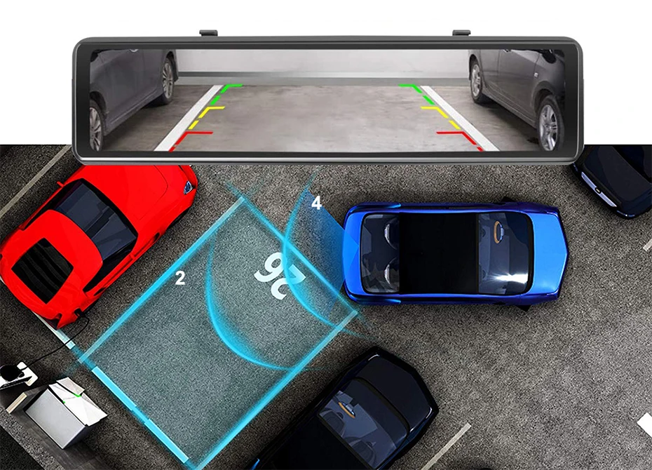 Автомобильный видеорегистратор-зеркало заднего вида, 12 дюймов, 4 Г...
