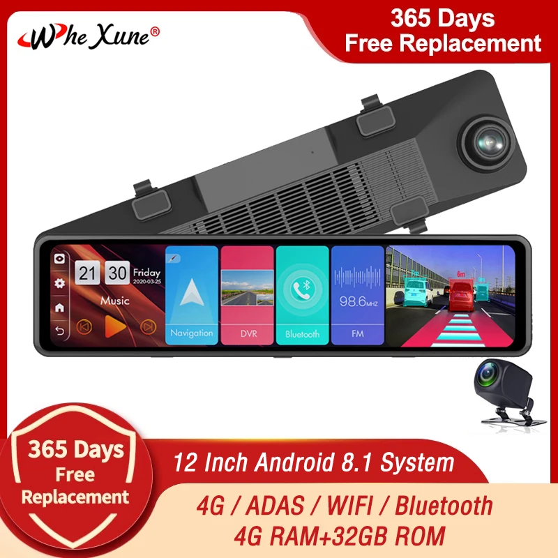Автомобильный видеорегистратор WHEXUNE, 4G, 12 дюймов, 4-канальный ...
