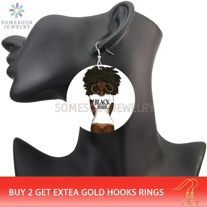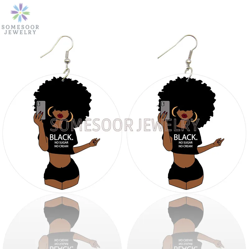 SOMESOOR меланин поппин королева вьющиеся деревянные висячие серьги...