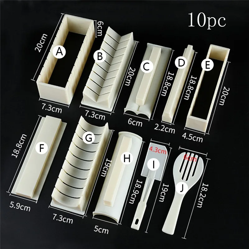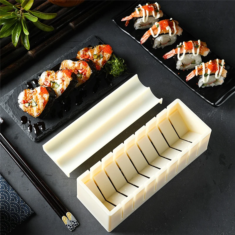 10 шт.компл. набор для приготовления суши, кухонный инструмент для изготовления суши, роликовая форма для риса, суши, овощей, мяса, гаджеты для скручивания
