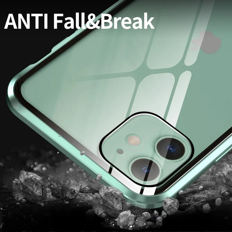 Металлический магнитный чехол из закаленного стекла для телефона с полной защитой 360 градусов, чехол для iPhone 12 11 Pro MAX 8 7 SE 6S Plus XR XS X, чехол