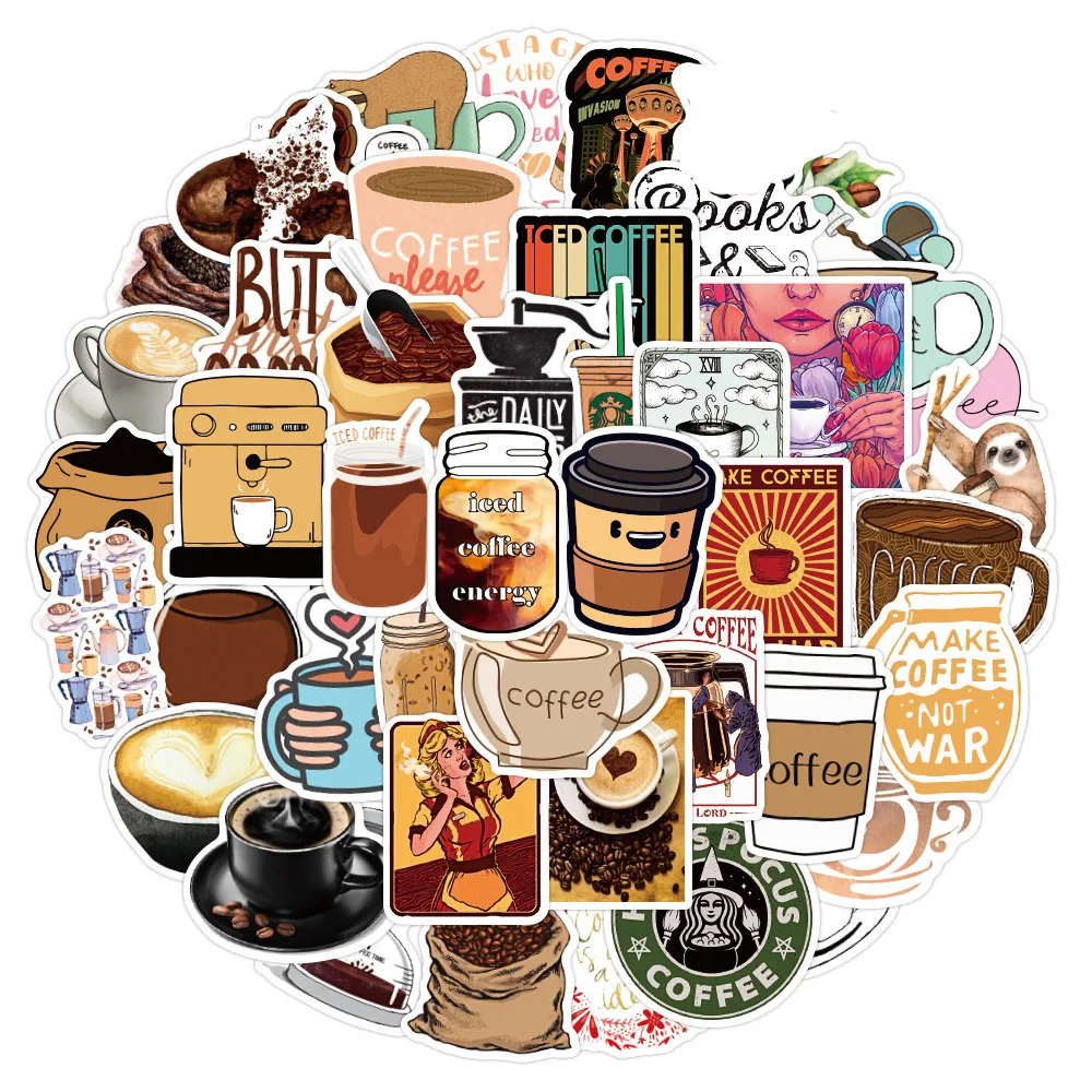 Водостойкие наклейки для девочек, наклейки на тему кофе ПВХ, 50 шт....