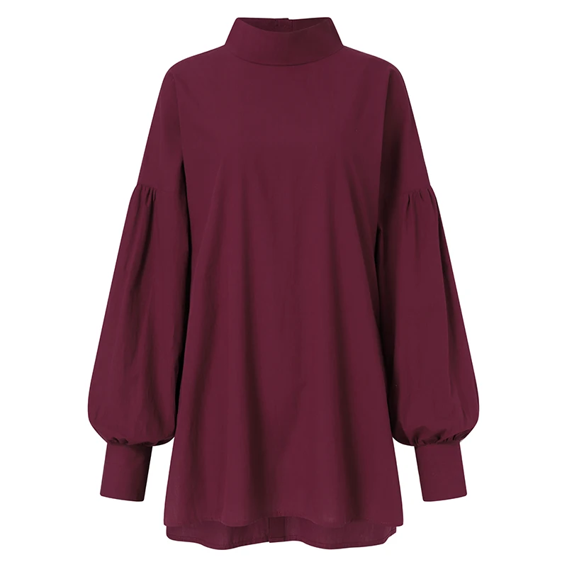 Модель ZANZEA 2022 года, стильный весенний Топ, Женская Повседневная Блузка с буффами на рукавах, женский топ с высоким воротником, однотонная туника