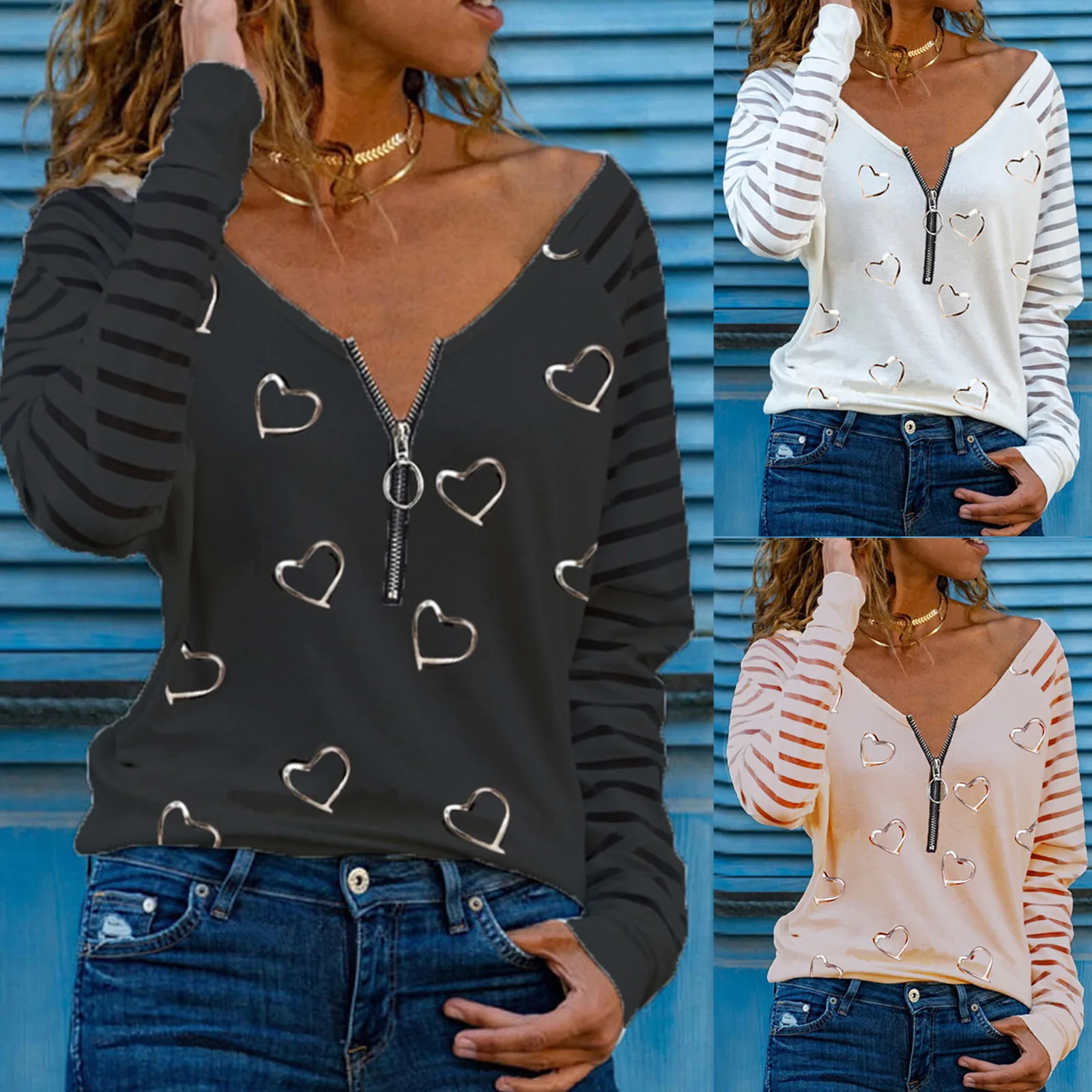 Женская модная блузка с V-образным вырезом и длинным рукавом размера плюс