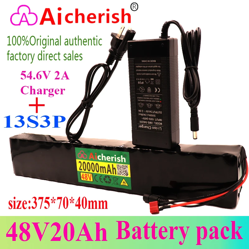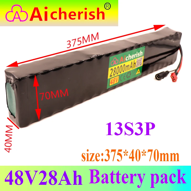 18650 аккумуляторная батарея 48 В 13S3P 28ah 780watt перезаряжаемая встроенная аккумуляторная батарея BMS 48В Aicherish 18650