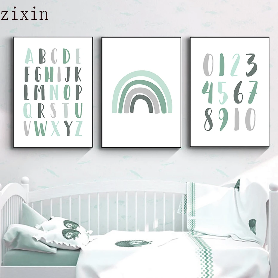 Современный Алфавит радуги Детская украшения дома настенные картины холст картина, печатный плакат Плакаты для маленьких девочек комнаты