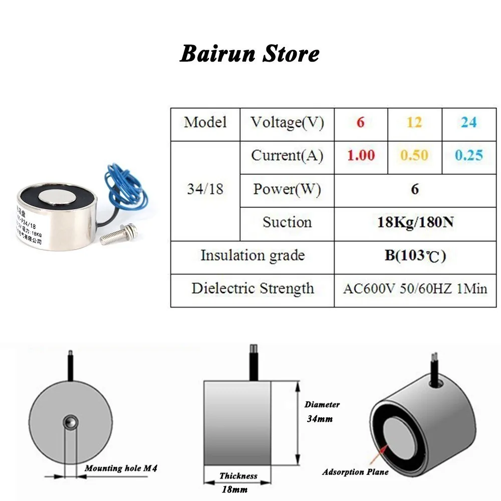 34*18 мм всасывания 18 кг 180N DC 5V12 V24V Мини соленоид; Электромагнитная катушка Электрический Подъемный электромагнит сильный держатель чашки DIY 12 v