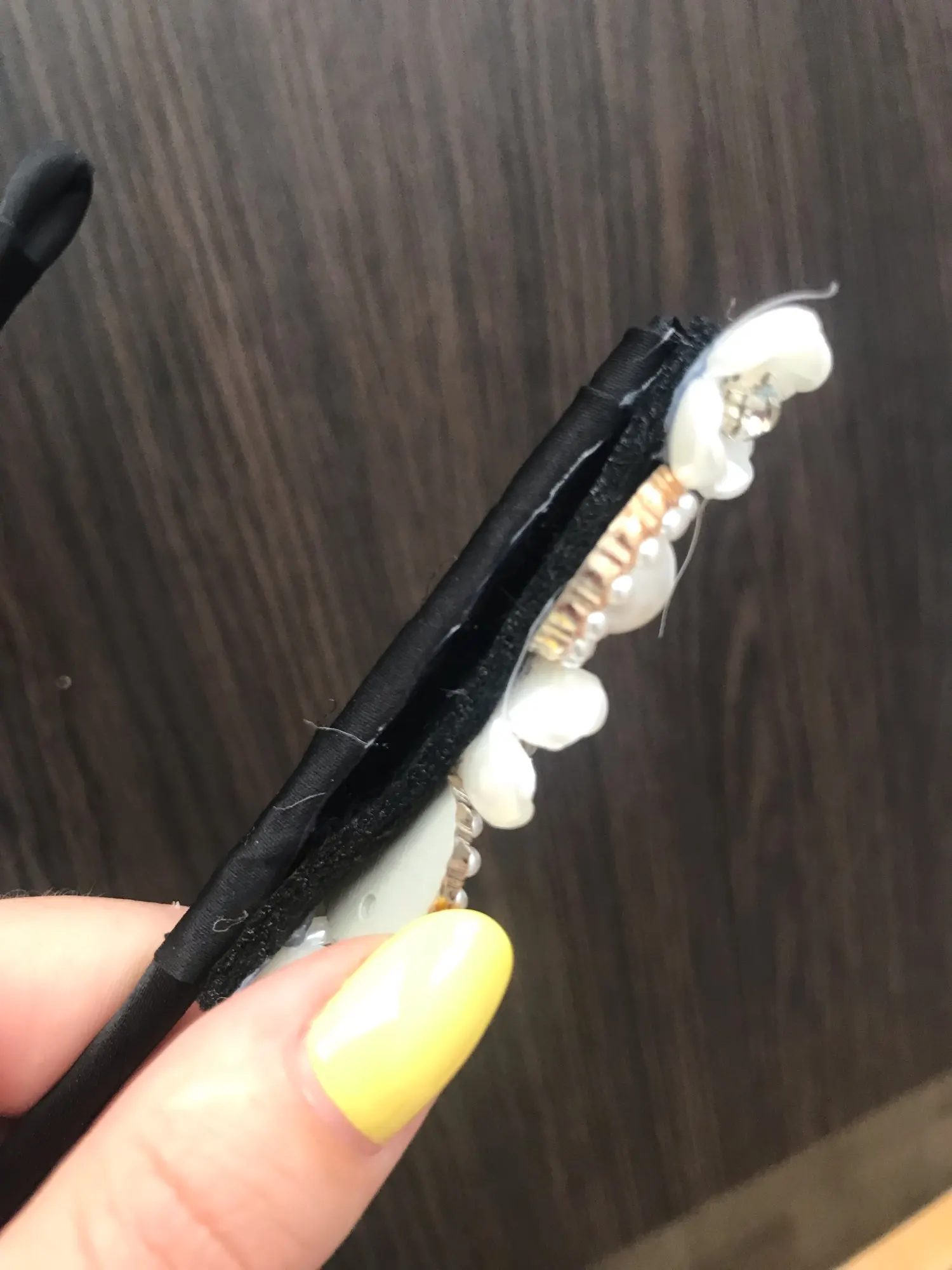 Повязка для волос милая, но проволока слишком длинная. Я просто не понимаю, почему делать это так долго, а затем завернуть в кусок ткани с клеем