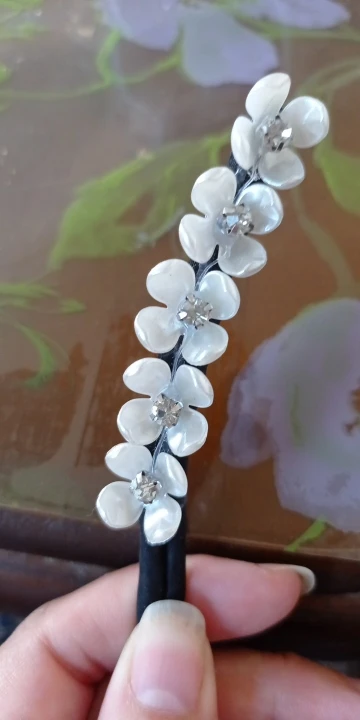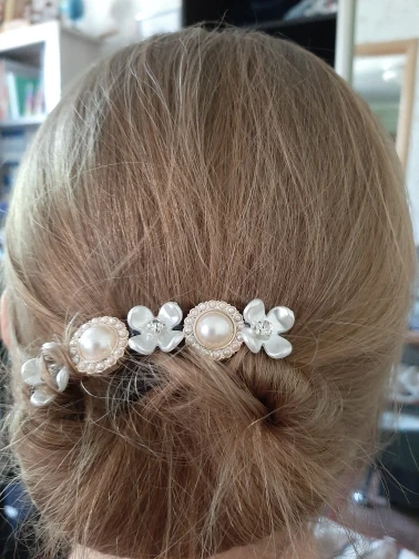 заколки прибыли быстро, проволока внутри тугая, но цветочки ОЧЕНЬ ПЛОХО держатся. для того чтобы загнуть, надо приложить усилие, если при этом слегка зедеть цветок, то он отваливается, так как не пришит, а приклеен на термоклей. красиво, но не практично. на этой заколке украшения должны быть пришиты намертво, а не приклеены