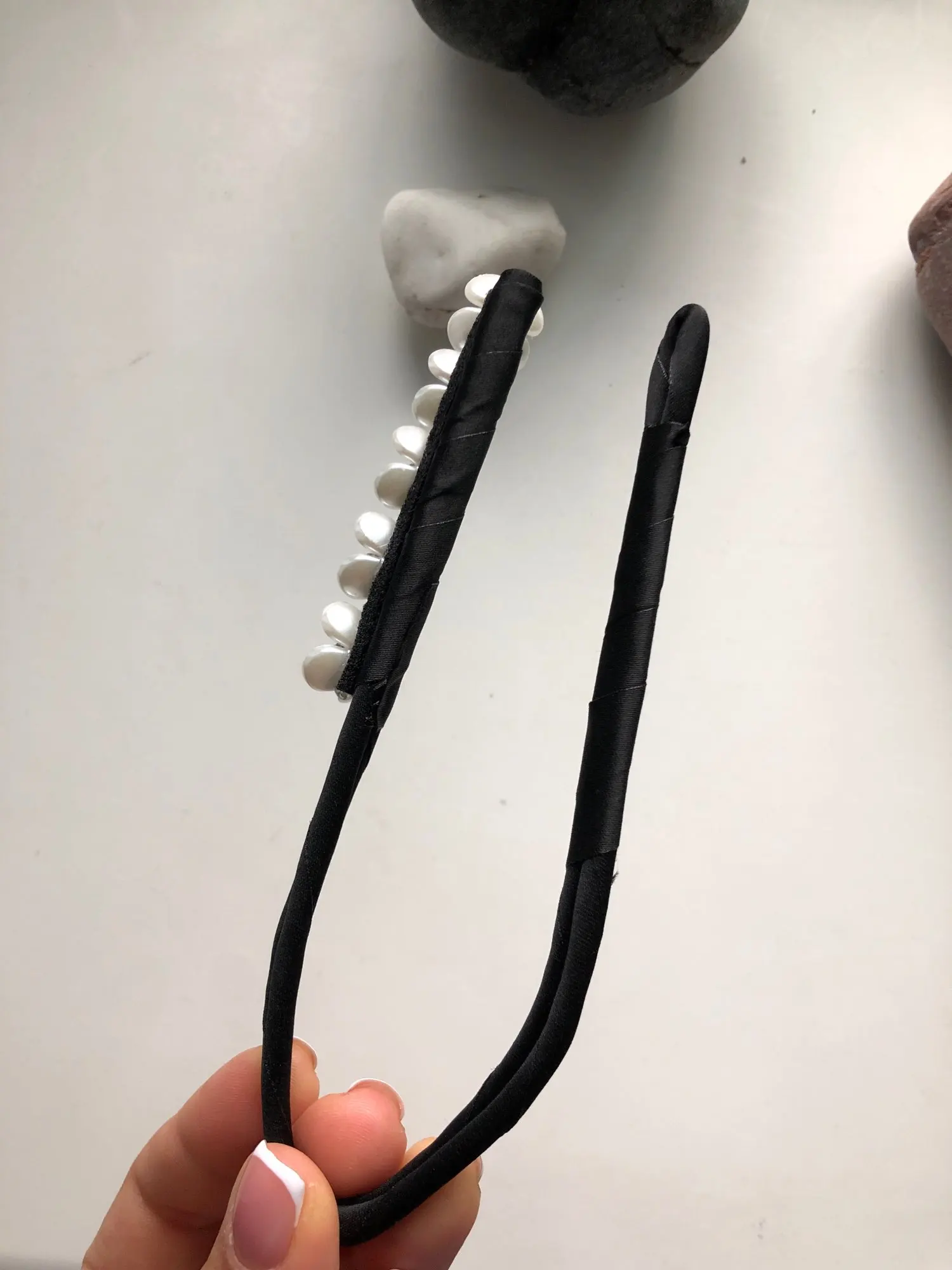 Хороший аксессуар для волос, но мне кажется немного хлипкий на концах. Сильно скрутить его не получится. Но смотрится на голове хорошо, и элегантно.